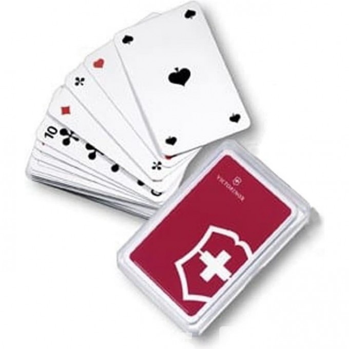 Колода из 36 карт с логотипом Victorinox. Поставляются в прозрачном пластиковом футляре.